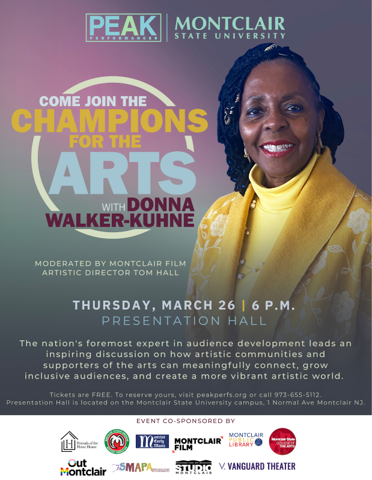 In this open and inviting conversation, she shares concrete examples of successful audience outreach from her extensive field experience, as well as spotlighting young Champions for the Arts in the Montclair State University community. They're ready to pledge their commitment to forging dynamic strategies to strengthen the arts. Are you ready to join them?